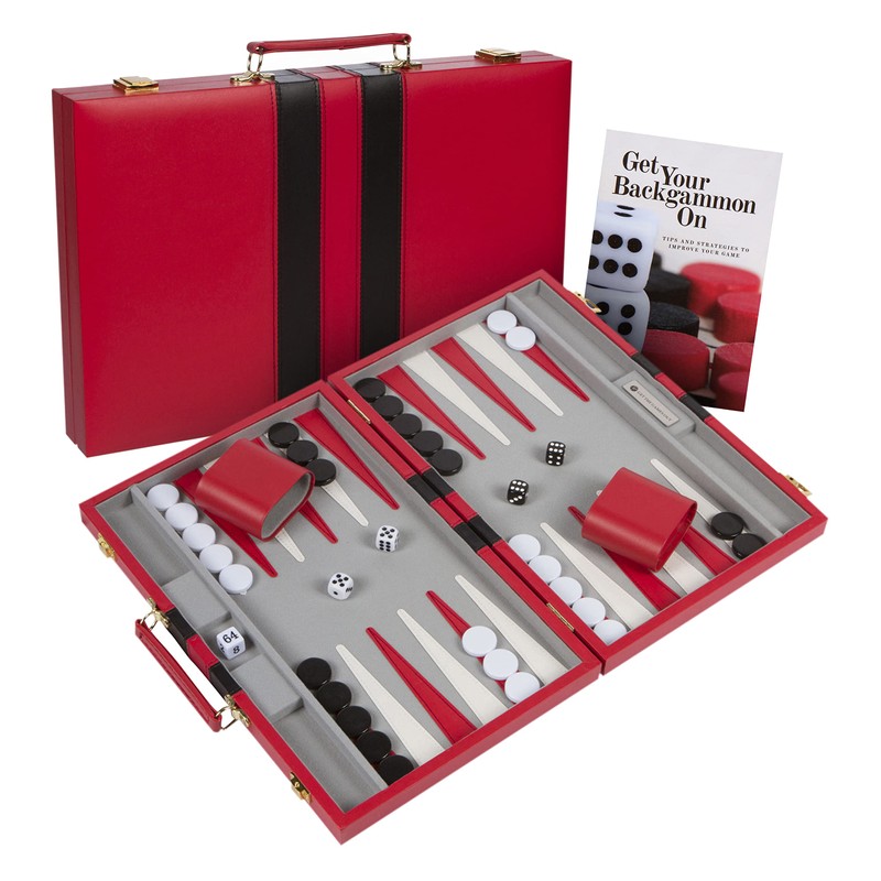 Get The Games Out Top Backgammon Set - Classic Board Game Case - Best Strategy & Tip Guide - Available in Small, Medium and Large Sizes (Red, Medium)