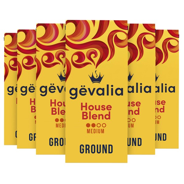 - Six 12 oz bags of Gevalia House Blend Medium Roast Ground Coffee