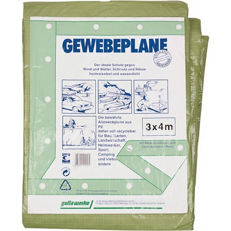 100 g/m². Olive. These tarpaulins are made from ribbon fabric tarpaulins with PE coating. This creates an extremely robust, flexible, waterproof and easy to work with material. The finished tarpaulin also has edge reinforcement, as well as durable aluminium eyelets. The tarpaulin is UV-stabilised. Individually packed. Custom-made products are possible at any time. Pack = piece