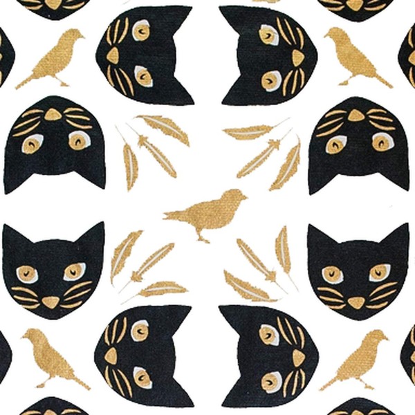 Gift Wrap - Meow Meow - White/Black/Metallic Black