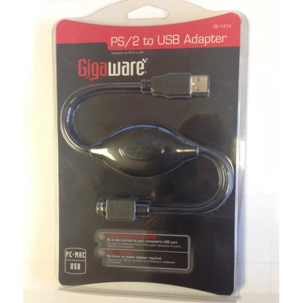 Gigaware PS/2 to USB Adapter, CONVERTS YOUR PS/2 DEVICE SO IT CAN CONNECT TO YOUR COMPUTER'S PORT, PLUG AND PLAY, NO DRIVER OR POWER ADAPTER REQUIRED.