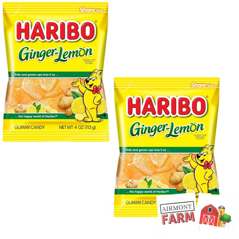 Ginger Lemon Share Size Gummi Candy, 2 Pack with 2 Stickers