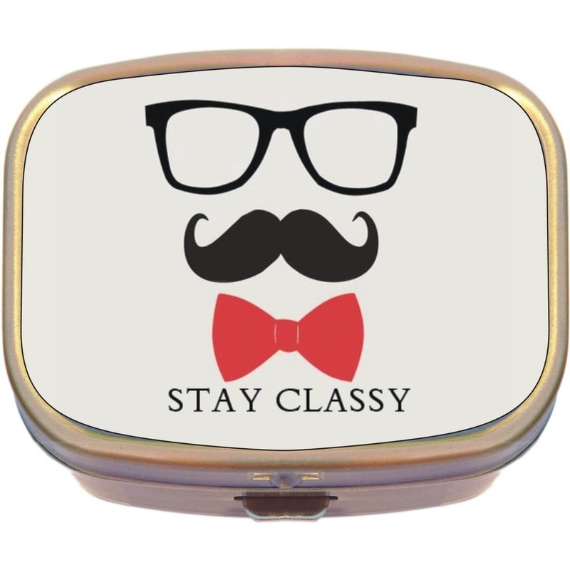 Glasses Moustache Bowtie Brass Rectangle Pill Box
