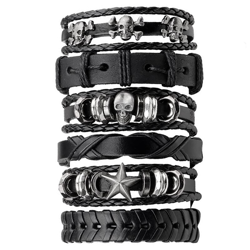 - Punk leather bracelet can be stacked with other bracelets to easily match your outfits.