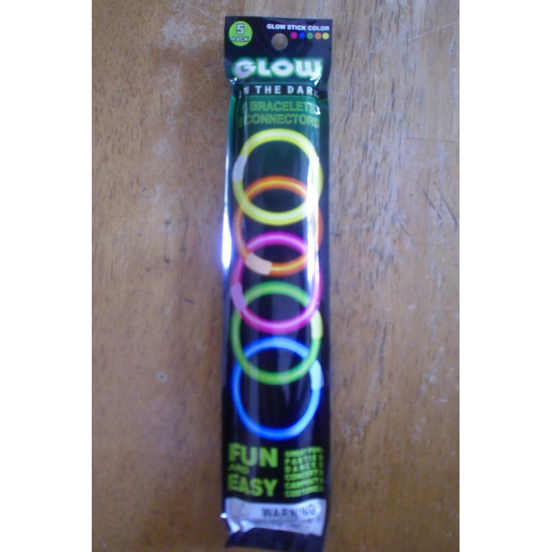 Pack of 5 glow in the dark bracelets.