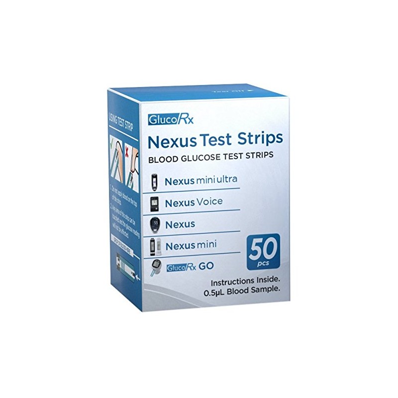Test strips are used in conjunction with a blood glucose meter to monitor blood glucose levels GlucoRx Nexus test strips are used in conjunction with the GlucoRx Nexus range of blood glucose meters to monitor blood glucose levels. Pack size: 50 test strips per box Compatible with: GlucoRx Nexus GlucoRx Nexus Mini GlucoRx Nexus Voice