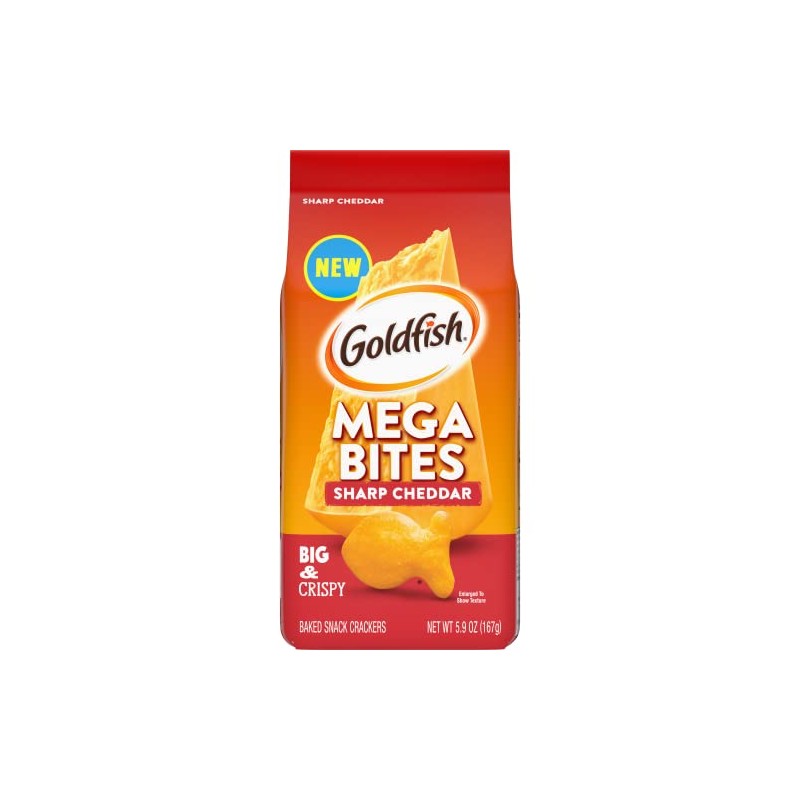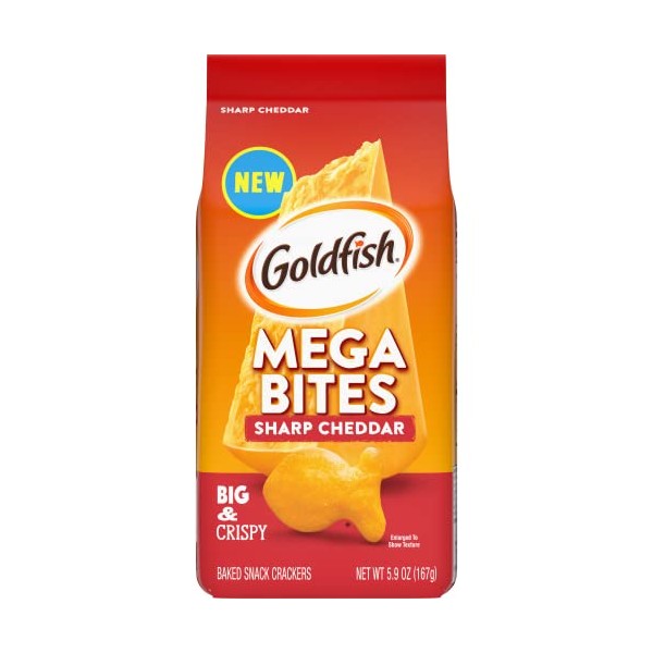 - MEGA BITES: Extra large Goldfish crackers are mega crispy, mega cheesy, mega delicious