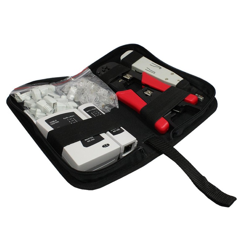 • Modular crimping tool for RJ11/-RJ12/-RJ45 connectors, includes smooth cable cutter