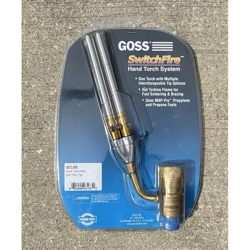 Goss GHT-200 Hand Torch with Twin Tip. Condition is New. Shipped with USPS Ground Advantage.