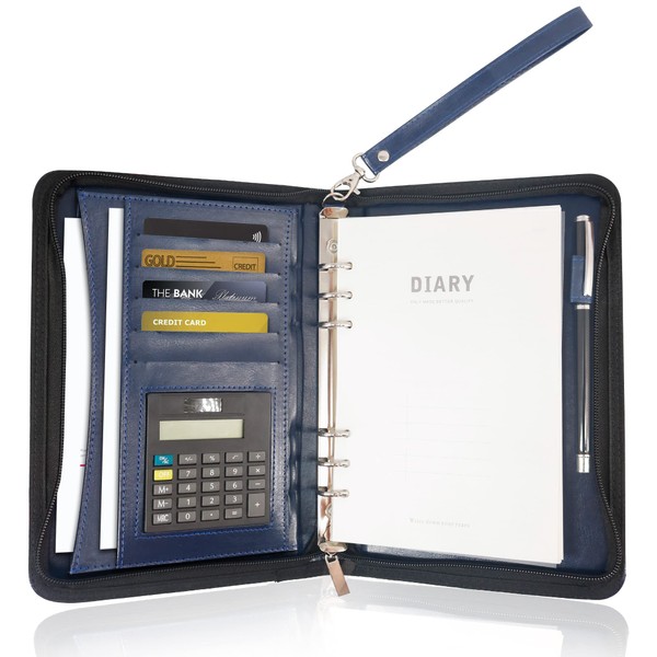 GraduatePro Clipboard Folder A5 with Lid Zip Leather Organiser Folder Document Folder Clipboard Outdoor Blue