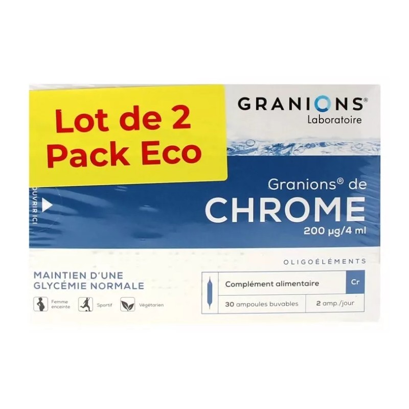 Granions Chrome Chromium Liquid 200µg - 2 x 30 Phials [ EXP: 01/2027 ]