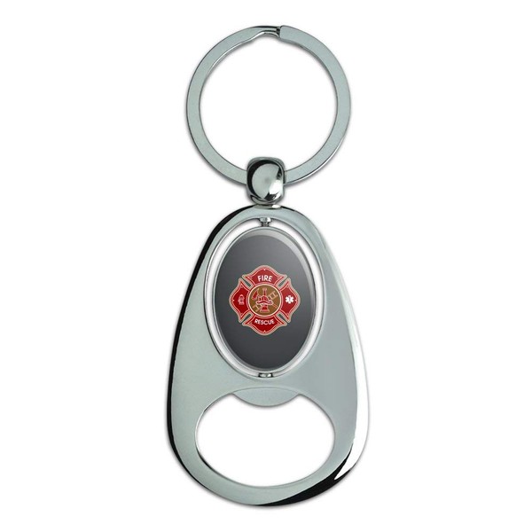 GRAPHICS & MORE Firefighter Fire Rescue Maltese Cross Keychain Chrome Metal Spinning Oval Bottle Opener