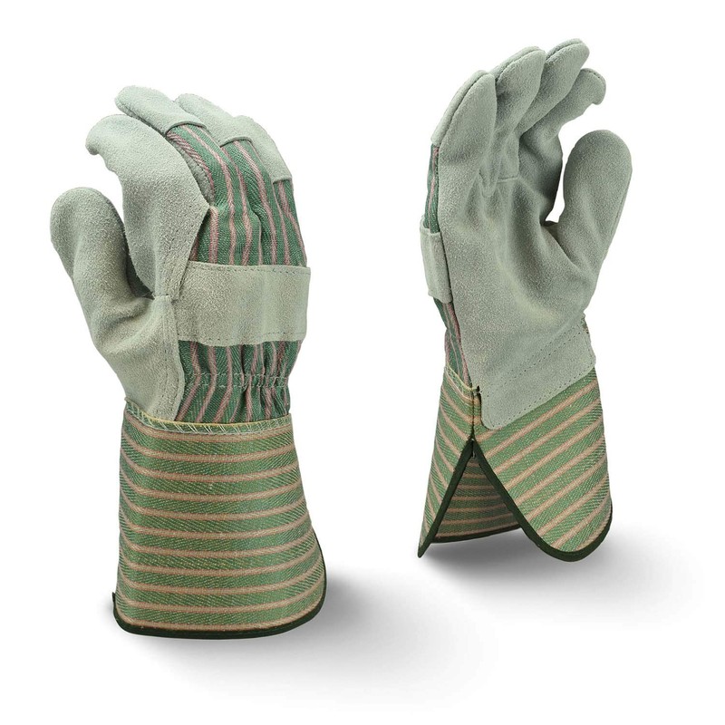 - Gray Split Cowhide Leather Glove with Gauntlet Cuff