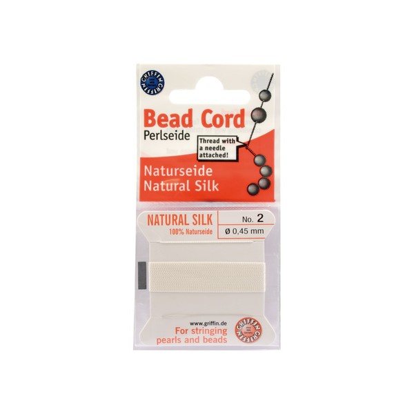 Griffin 100% Natural Silk Beading Cord String Thread - White - 2 metres with one Needle - Size 0.45mm