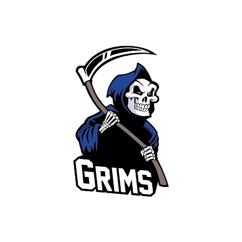 Grims Skull Mascot Car Bumper Sticker Decal 3" x 5"