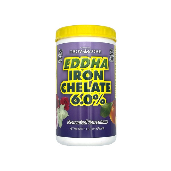 Grow More 0.2-0-0 EDDHA Iron Chelate for Greener Plants on Soils with pH of 7 or Above - 1lb of Water Soluble Chelated 6% Iron for Plants