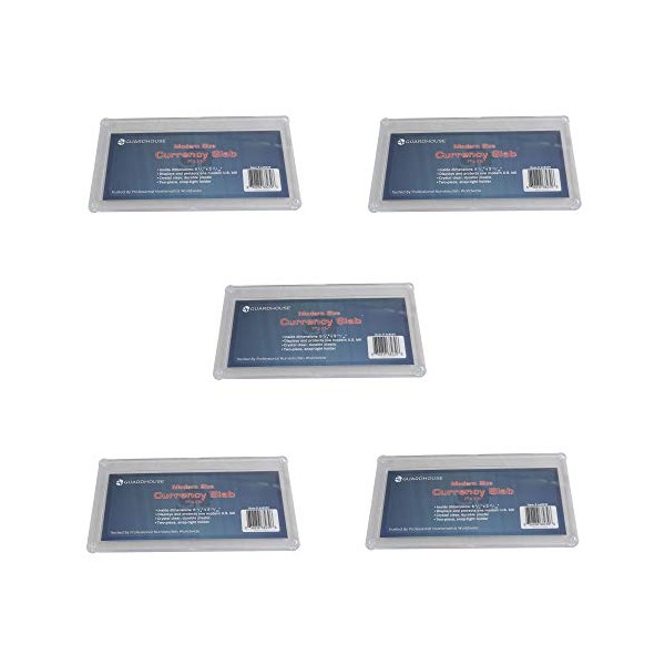 - Five Pack of snaplock holders for one modern-sized US banknote or similar sized banknote inside dimensions 6 1/5 x 2 11/16" ( 157.5mm x 68mm )