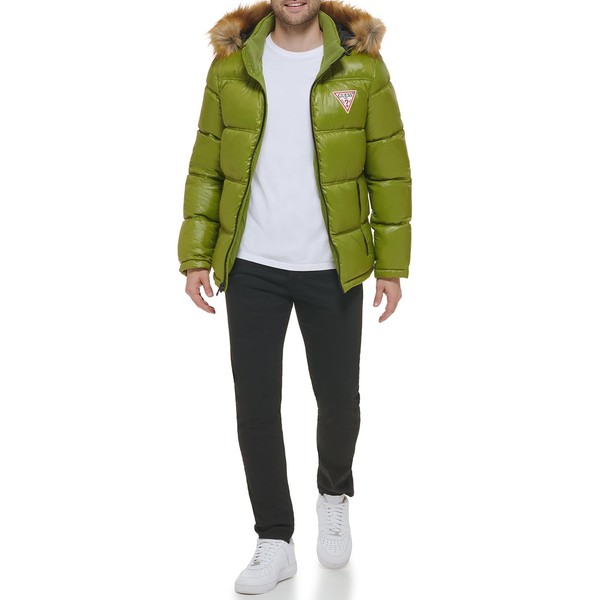 Guess Men's Warm Rain Resistant Puffer, Moss, Large