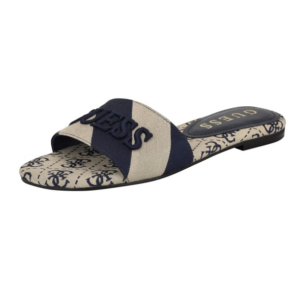 Guess Women's HARINI Flat Sandal, Dark Blue/White Stripe Multi 400, 7.5