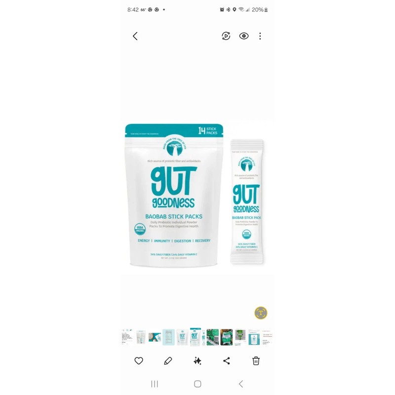 gut health powder w/Baobab superfruit. Prebiotics, daily fiber, digestive health promotes energy, immunity, digestion, and recovery