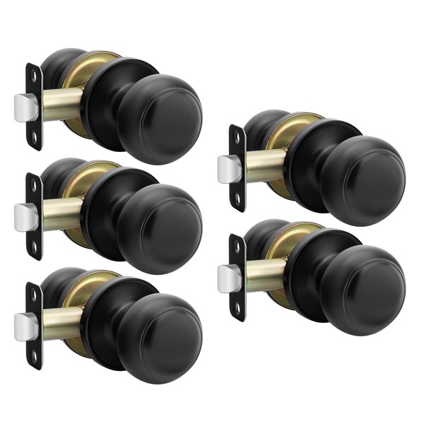 Haidms Black Passage Door Knobs Interior, Classic Matte Black Interior Door Lock knobs Closet, Round Black Closet Door Knobs Set for Hallway(5 Pack)