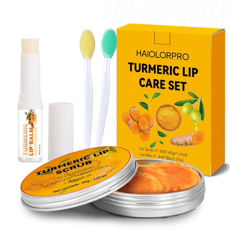 The HAIOLORPRO Turmeric Lip Care Set offers a comprehensive solution for achieving soft, healthy lips. This set includes turmeric lip scrub (40g), turmeric lip balm (5g), and two specialized brushes, making it the perfect addition to your skincare routine. The lip scrub gently exfoliates, removing dead skin and impurities, while the lip balm provides deep hydration and nourishment to keep your lips smooth and supple. Infused with the natural benefits of turmeric, this set not only cares for your lips but also helps brighten and even out lip tone. Ideal for those suffering from dry, cracked lips, or anyone looking to enhance their lip care regimen, the HAIOLORPRO Turmeric Lip Care Set brings you all the tools you need for perfectly pampered lips.