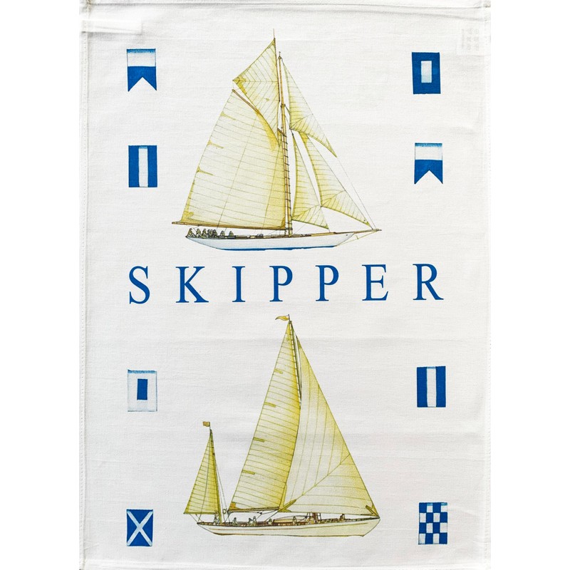 - Skipper large cotton tea towel in blue and white.