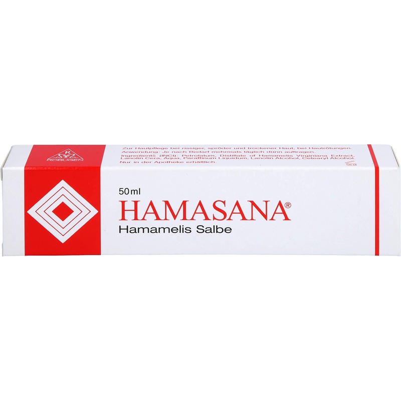 Skin protection witch hazel ointment with plant extracts from the North American witch hazel plant (magic shrub). Hamasana witch hazel ointment protects the skin from age-related drying out and sun thanks to its fat content. Helps and nourishes skin cracks and soreness. The cosmetics Hamasana witch hazel ointment is free from preservatives. Do not use on open wounds. Hamasana witch hazel ointment contains the natural extracts of bark and Bl tter of the Virginian witch hazel (Hamamelis virginiana). The Indians of North America used the fresh sheets and branches to treat burns, boils and injuries. Since the middle of the 19th century, witch hazel has been used in North America and sp ter also in Europe. Witch hazel virginiana is very suitable as skin protection and for skin care, especially for cracked, dry and dry skin. Witch hazel prevents the skin from drying out, which becomes increasingly dry due to age but often due to insufficient water absorption.