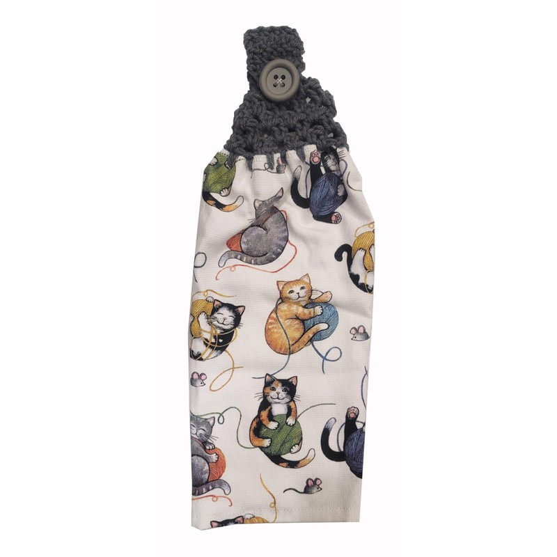 Handcrafted Grey Crochet Topped Cats with Yarn Kitchen Towel
