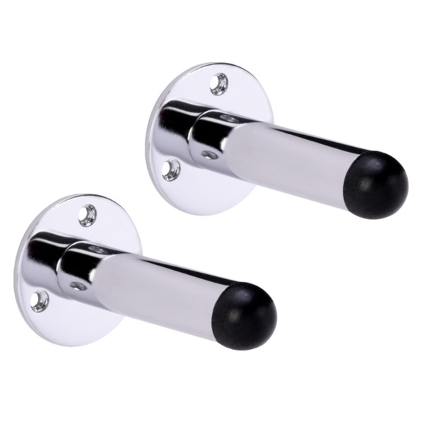 HANDLEZONE® 2 Pack 75mm / 3 inch Projecting Skirting Or Wall Mounted Door Stop, Rubber Buffer Stopper - Polished Chrome