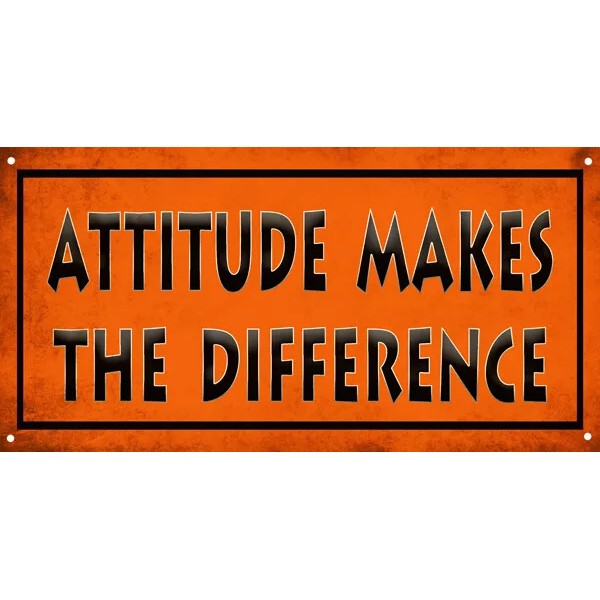 ATTITUDE MAKES THE DIFFERENCE 6"x 12" Metal Sign. .040 Aluminum. This Sign Has Eyelets. Made In The USA.