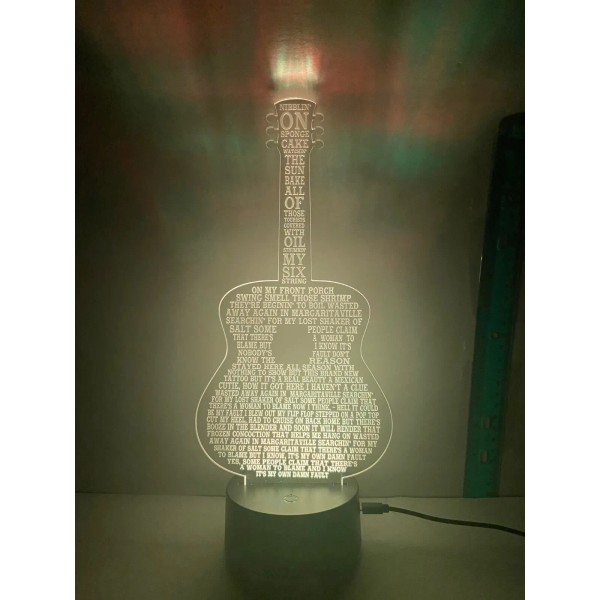 Handmade MARGARITAVILLE - Jimmy Buffet Acrylic Guitar With Lyrics Multi-Colored LED Lamp