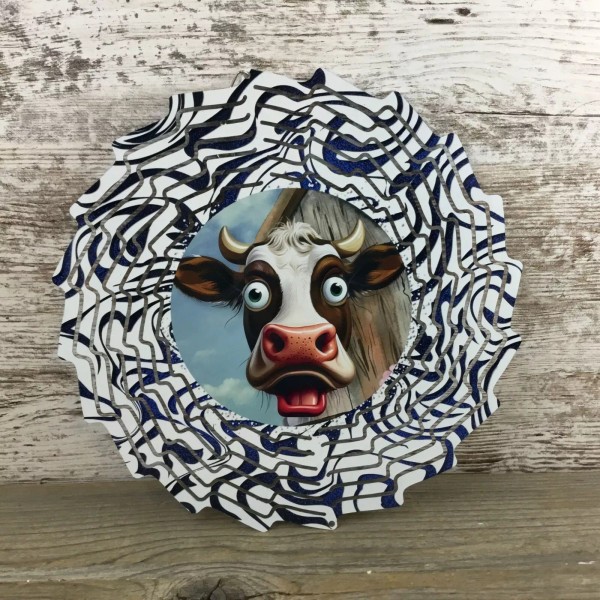 Handmade Wide Eyed Cow Wind Spinner 10"