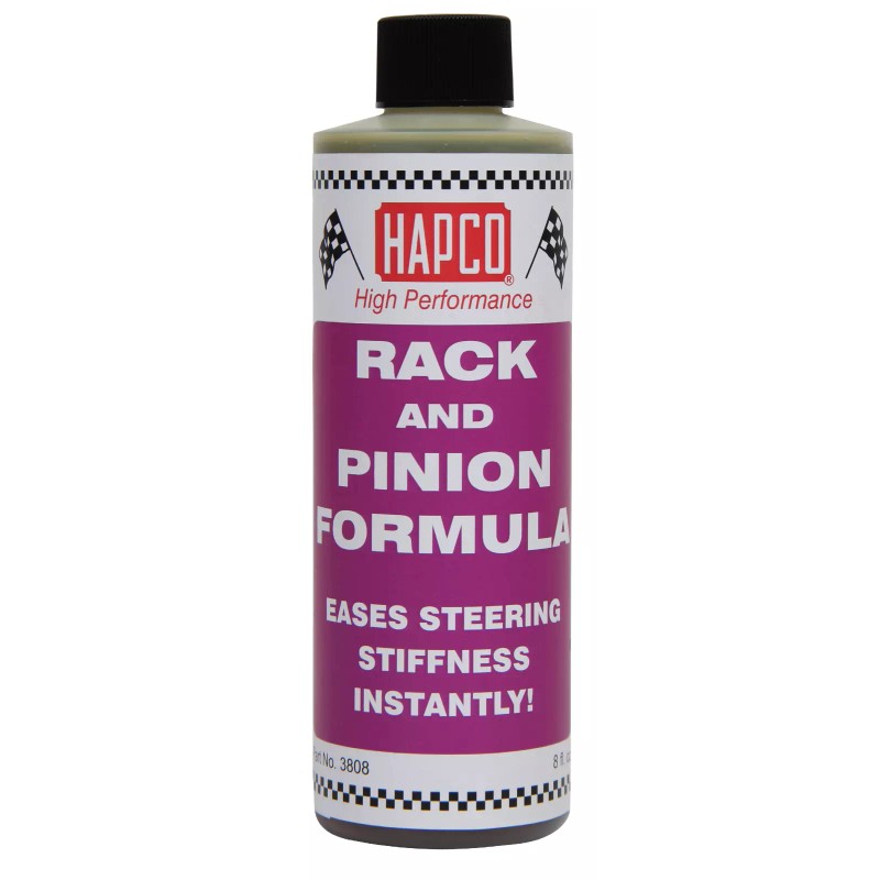 Hapco Rack and Pinion Formula eliminates steering stiffness and noise instantly! With just one treatment, it also effectively protects all power steering systems against heat and wear. Compatible with all types of power steering fluid, will not harm seals and does not contain petroleum distillates. For Best Results: Add one 8 oz. bottle of Rack And Pinion Formula directly to power steering fluid reservoir. Start engine and work steering wheel its entire range several times to circulate fluid throughout the system.