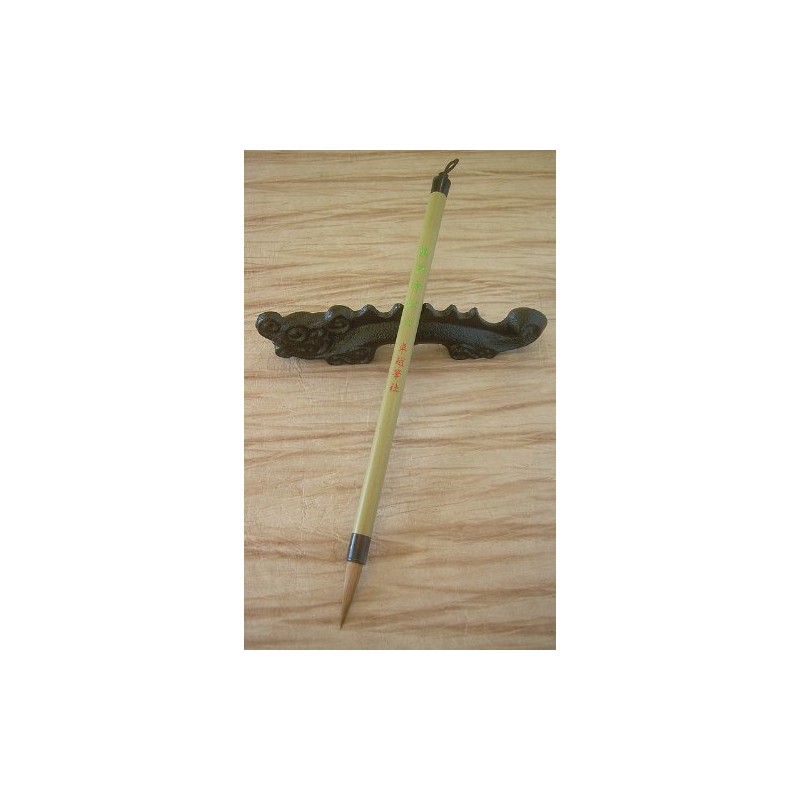 This fine point brush is popular for fine lines dots calligraphy work and signatures. Natural hair bamboo handle and horn ferrule. A beautiful and economically priced brush. (Dragon brush rest is not included!)