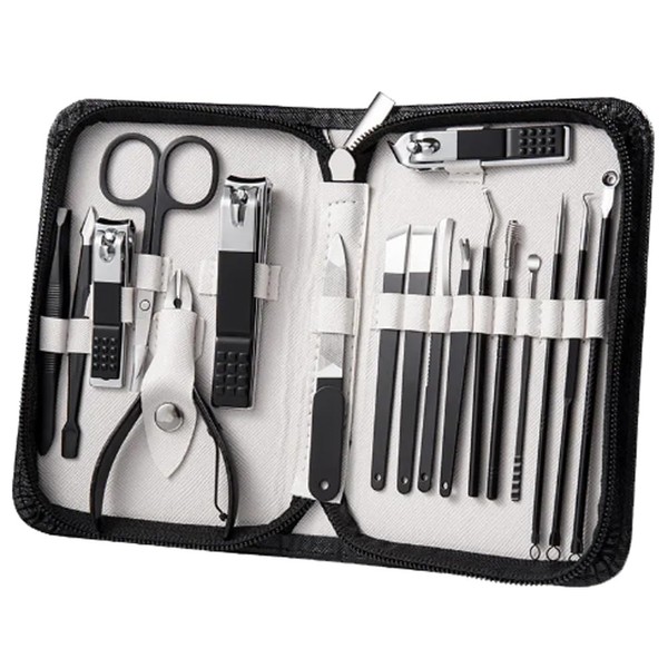 happylaladream 18点 多機能ステンレス製ネイルケアセット 爪切り 爪やすり はさみ 毛抜き ピンセット 耳かき ネイルケア ステンレス 手用 足用 顔用 おしゃれ 携帯 旅行 トラベル 収納ケース付き ペディキュア セット 甘皮処理 眉毛 眉毛ケアキット 爪切りクリーナー