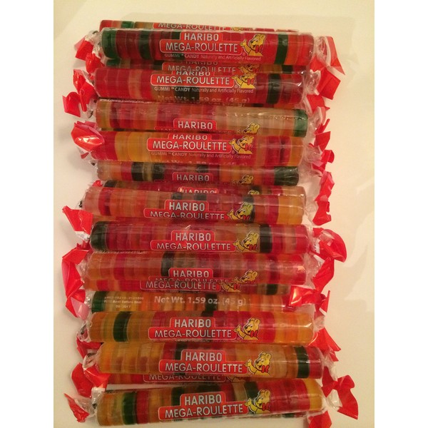 From the makers of America's #1 Selling Gummi Bear, say hello to HARIBO Mega- Roulette. Wonderfully chewy and bursting with assorted fruit flavors, these gummies are packaged in convenient rolls to satisfy your craving wherever you go. Kids and grown-ups love it so, the happy world of HARIBO