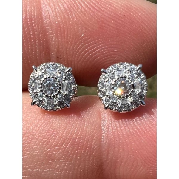 Harlembling Real Solid 925 Silver Iced CZ Hip Hop Men's Ladies Earrings Round Cluster Studs