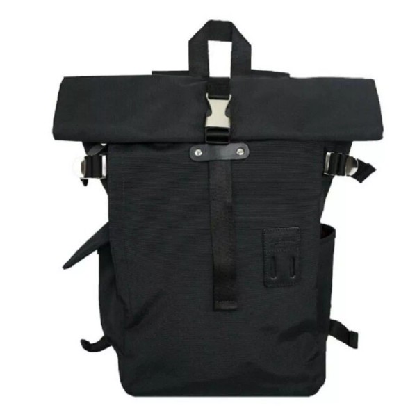 - A modern take of the classic rolltop backpack. Plenty of storage and pockets to organize your daily and travel essentials, but with an added pop of color, both inside and outside. Material: 1000d polyester, vegetable tanned leather accents.