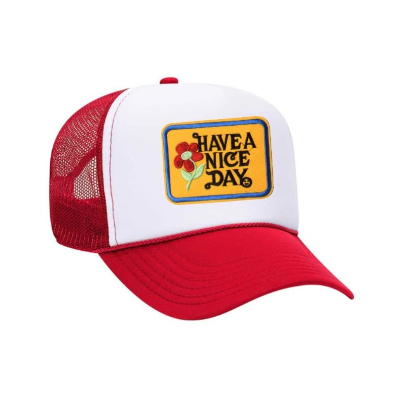 Have A Nice Day Vintage Patch Trucker Hat (Red/White)