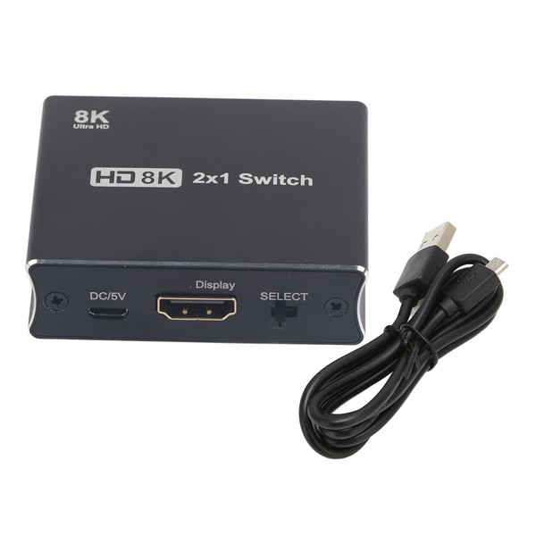 1、PROFESSIONAL DESIGN: HD Multimedia Interface 2x1 switch for easy transmission of AV from 2 different HD Multimedia Interface sources to 1 HD Multimedia Interface display. 2、EASY TO USE: Free yourself from plugging and unplugging HD Multimedia Interface cables and enjoy your game and work time easily by switching between 2 devices with one click. 3、HIGH RESOLUTION: 2 in 1 out switch supports 8K at 60HZ, 4Kat 120HZ, 1080p, 1080i, 720p, 576p, 480p resolutions. It provides transmission rates of up to 48Gbps and backwards compatible with all previous HD Multimedia Interface standards. 4、CAUTIONS: When connecting to Source or Display, it is highly recommended to use a power supply from a 5V USB power adapter with a Micro USB cable for best performance. 5、SUPERIOR PERFORMANCE: For 8K resolution, the length of the HD Multimedia Interface cable connected to each end of the switch should not exceed 3m/9.8ft. Output compatible devices: Full HD TV, for IOS TV, projectors, monitors, etc. 6、ADVANCED CHIP: 8K at 60Hz HD Multimedia Interface 2×1 switch with the latest chips. It is made of aluminium, corrosion resistant, resistant to overheating or breakage, durable and practical. 7、WIDELY COMPATIBLE: HD Multimedia Interface switch supports most devices with a standard HD Multimedia Interface interface. It is compatible with computers, for Macbook, for Xbox 360, for Xbox One, for PS5, for PS4, for witch, etc.