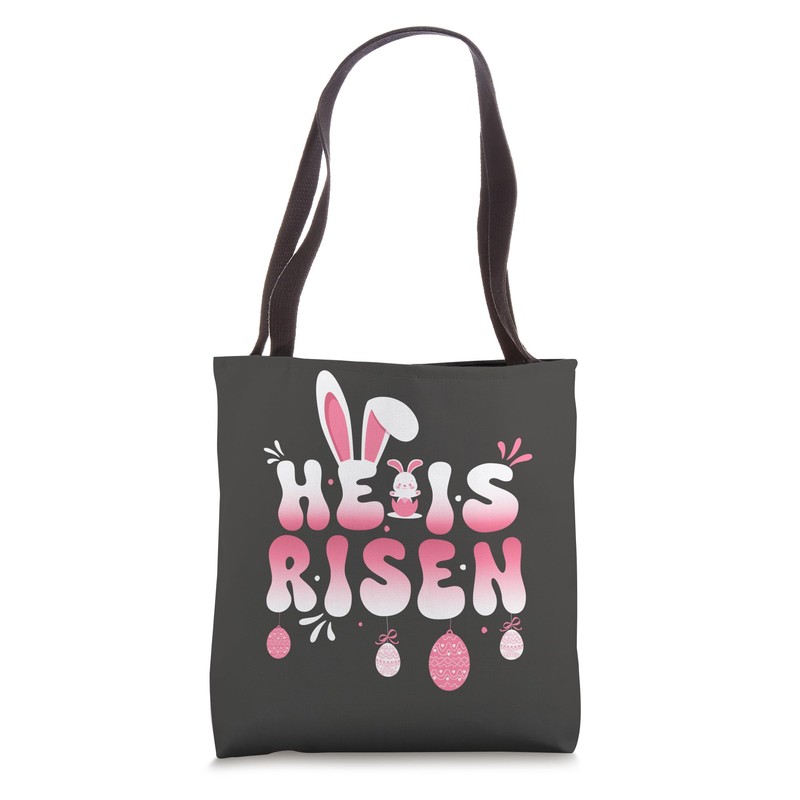 He Is Risen Bunny And Eggs Festive Design He Is Risen Easter Tote Bag