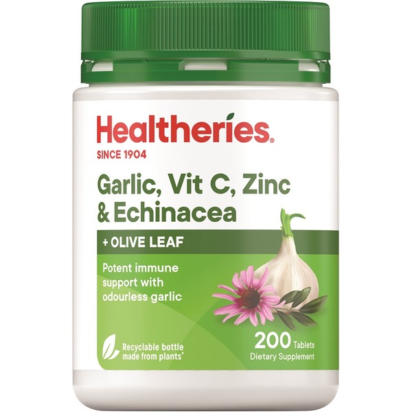 Healtheries Garlic, Vit C, Zinc & Echinacea + Olive Leaf Tablets 200