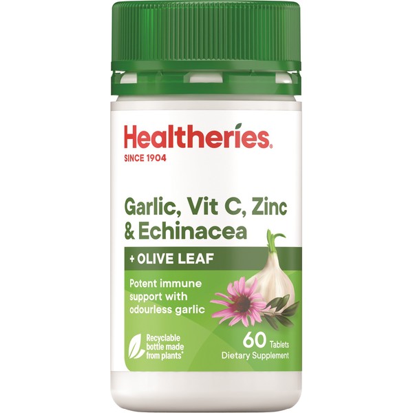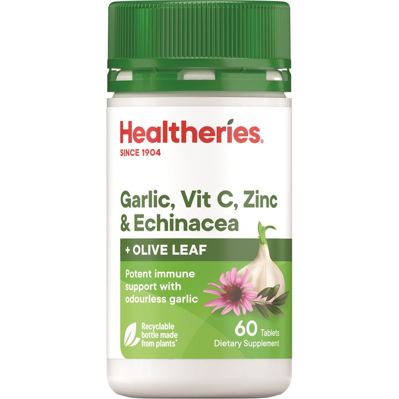 Healtheries Garlic, Vit C, Zinc & Echinacea + Olive Leaf Tablets 60