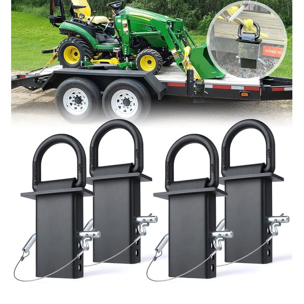 5/8" Heavy-Duty Stake Pocket D Rings with Anti-Loss Cord | Adjustable 18,000 lbs Trailer Stake Pocket Tie-Down Utility for Flatbed Trucks and Trailers | 4 Adjustable Holes | 4 Pack