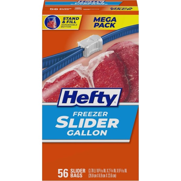 Hefty Slider Freezer Storage Bags, Gallon Size, 56 Count