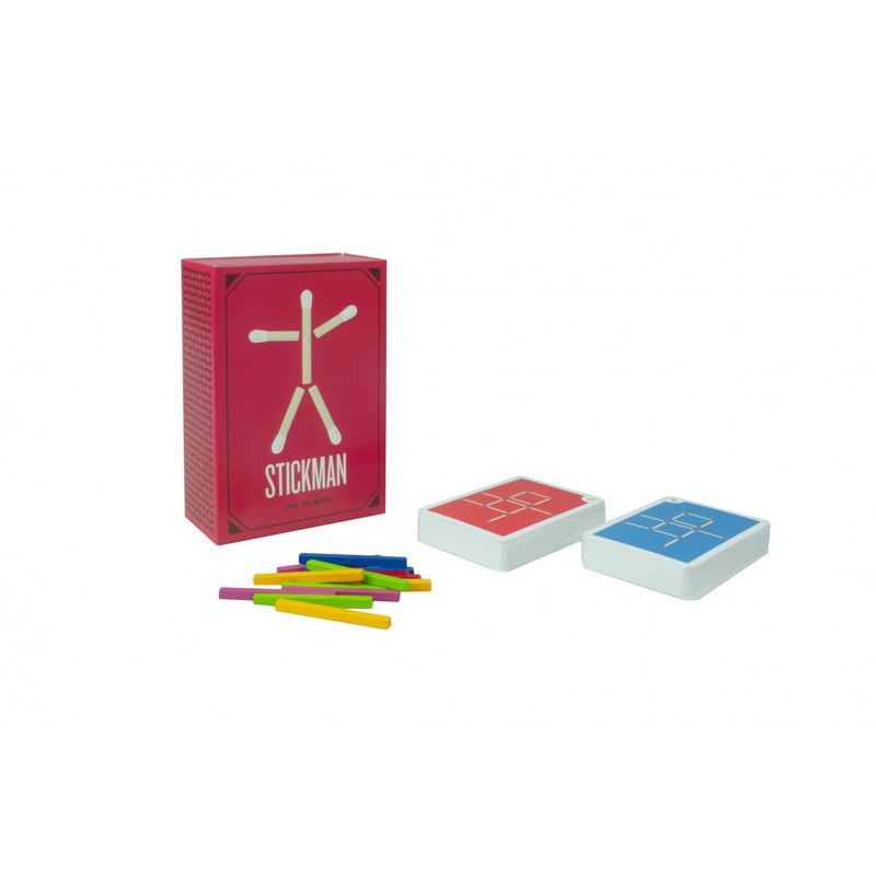 • The stickman card game includes 96 cards and 16 matches. It requires two to six players and the game takes approximately 20 minutes