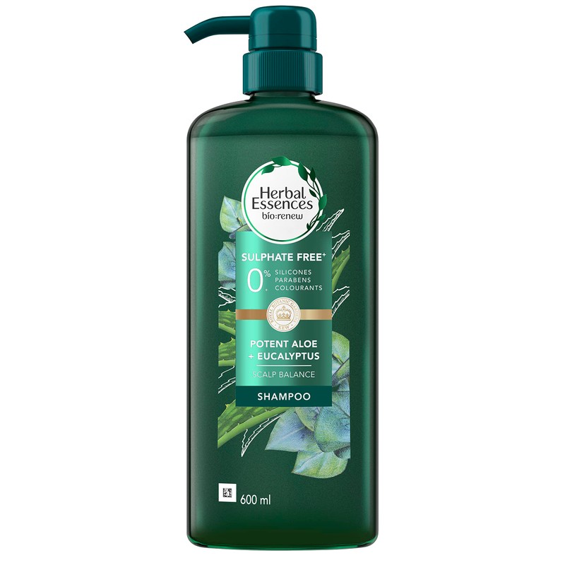 - Herbal Essences Sulphate-Free Potent Aloe and Eucalyptus Shampoo provides accentuated nourishment to your hair for a balanced scalp, making your hair soft and supple (execept for carried-ever additives and impurities; Sulphates refer to sulphated surfactants)