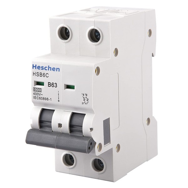 Heschen HSB6C 63 Amp Current 2 Pole Type B 6kA Breaking Capacity DIN Rail Mounted Circuit Breaker