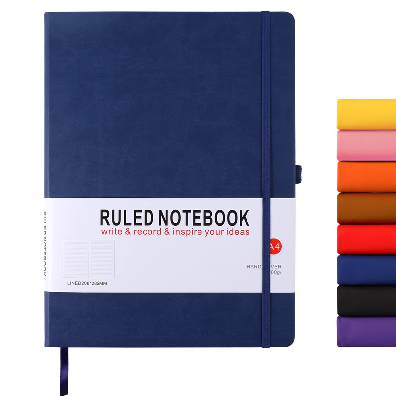 HIJYOO A4 Notebook, Notebook A4 Journal Notebook Hardcover Notepad with Bookmark Composition Notebooks, Pen Loop, and Elastic Closure, 8.3" X 11.18",Dark Blue